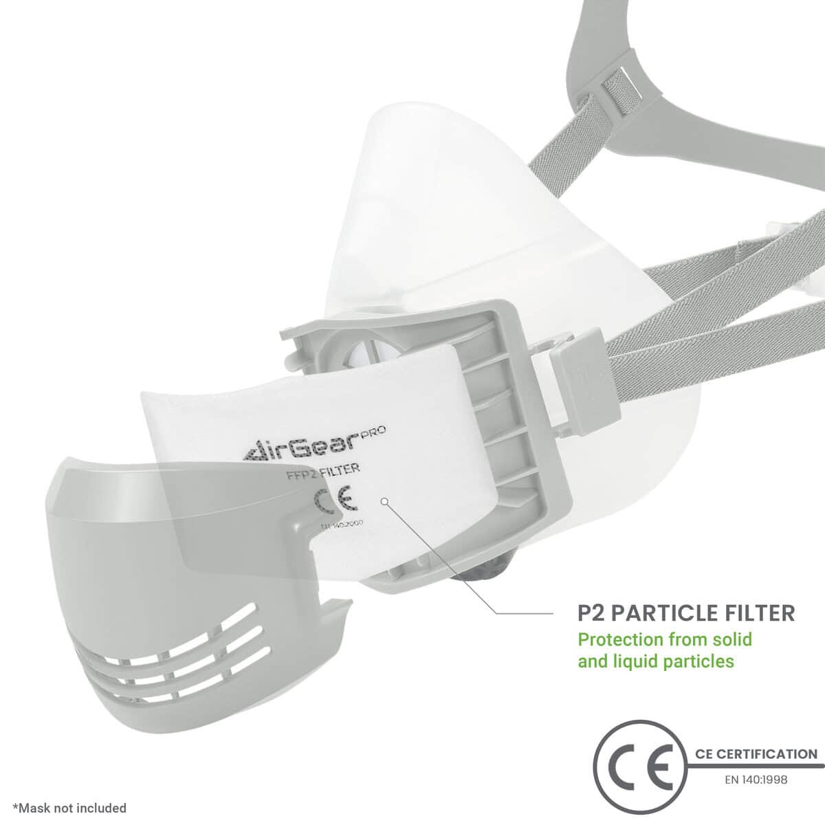 SÉCURITÉ CERTIFIÉE : Les filtres à charbon de la protection respiratoire AirGearPro sont homologués CE pour assurer votre protection pendant vos travaux de peinture, de rénovation, de démolition, de ponçage, de bricolage, de construction, etc.