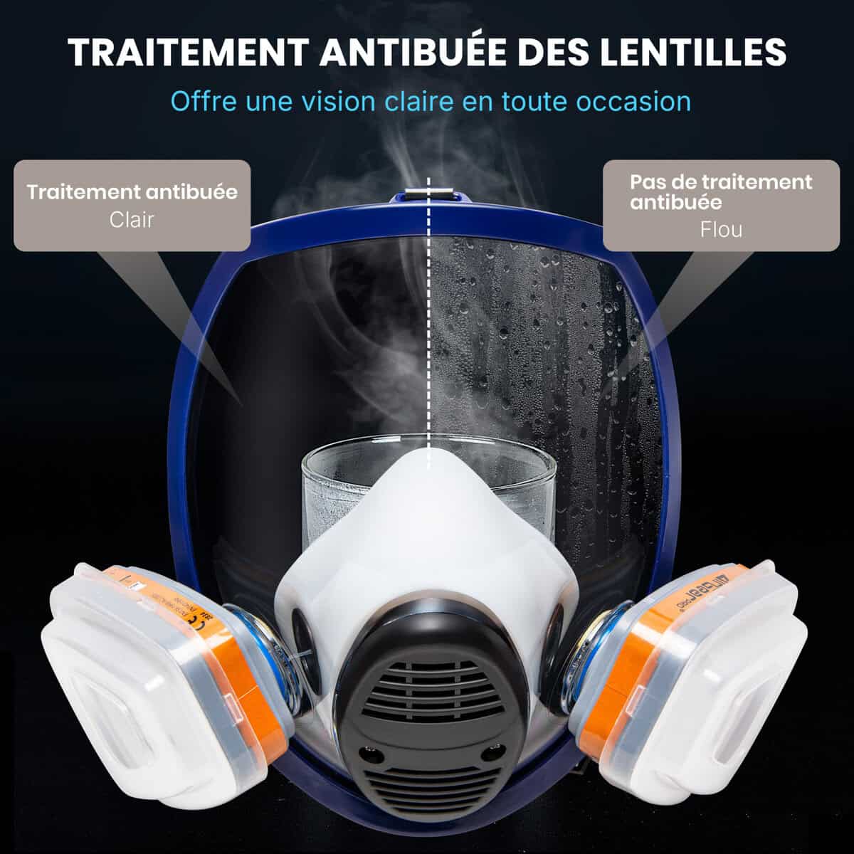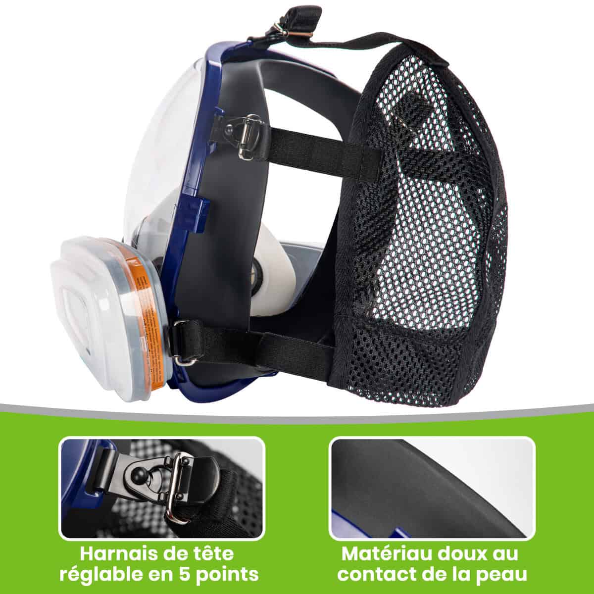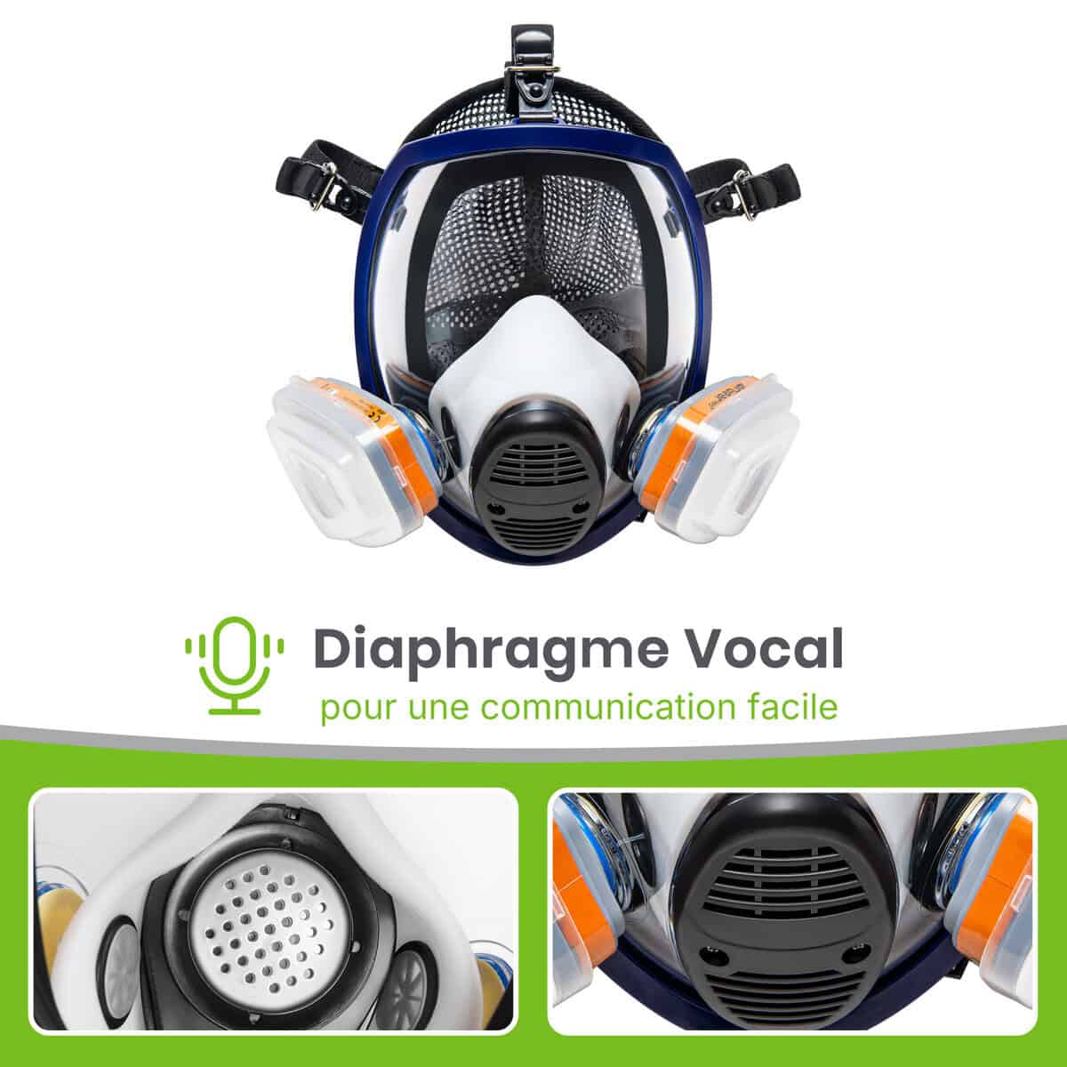 Notre masque à gaz est conçu avec un double système de filtration de classe A1P2 pour assurer votre protection contre les gaz, les vapeurs et les particules.