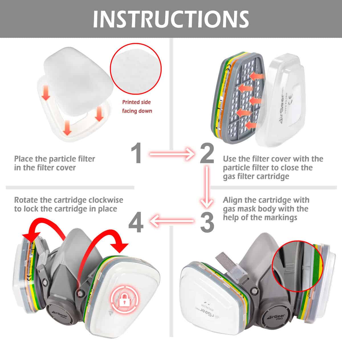 CERTIFIED SAFETY: AirGearPro respiratory protection carbon filters are CE approved to ensure your protection during your painting, renovation, demolition, sanding, DIY, construction work, etc.