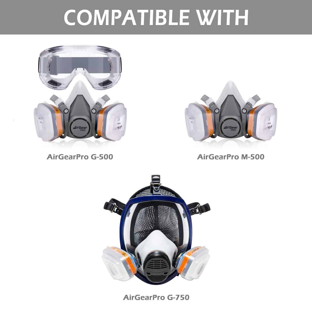 COMPATIBLE: The F-500 filter set is compatible with G-500, M-500 and G-750 respirator gas masks from AirGearPro.