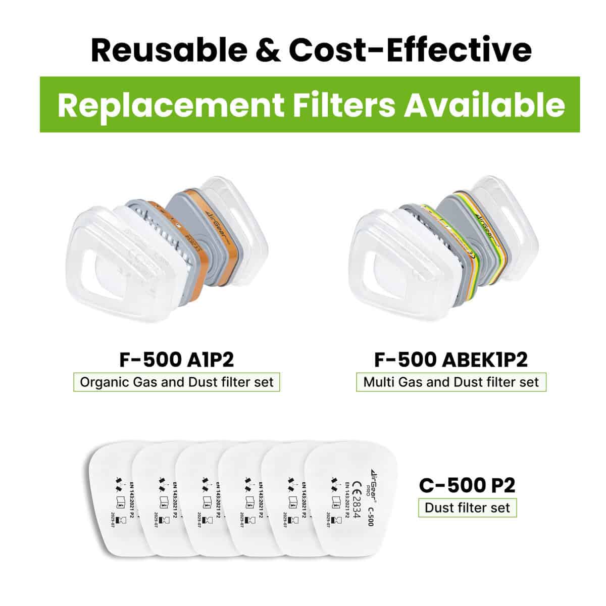REPLACEABLE FILTERS: Save money with our replaceable filters. Designed for use with our half and full face respirator masks, these filters can be swapped out when needed, allowing you to continue using the masks with optimal filtration.